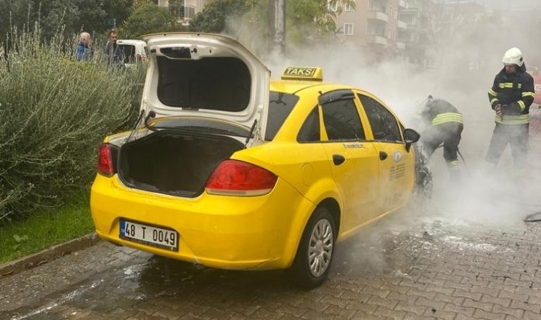Muğla’nın Menteşe ilçesinde seyir halindeki bir ticari takside çıkan yangın sonucu araç kullanılamaz hale geldi.