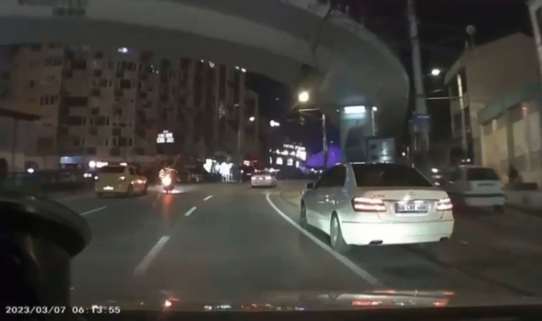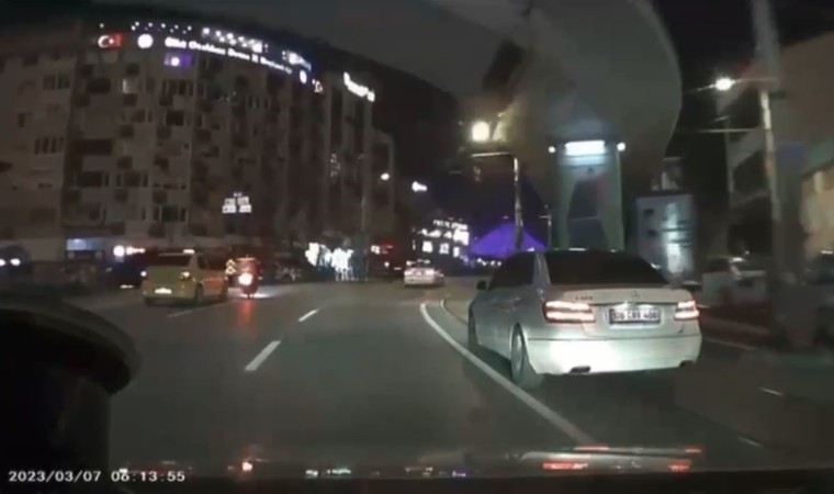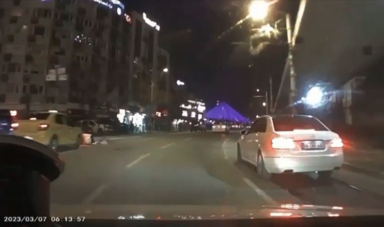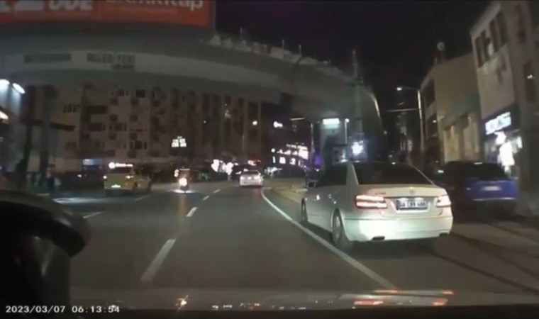 Bursa’da cadde üzerinde sol şeritte ilerleyen ticari taksi, aniden manevra yapan motosikletli kuryeye çarptı. Savrulan motosikletli sürücü yere düşerken, aracın altına kalmaktan son anda kurtuldu. Yürekleri ağza getiren kaza anı ise kameraya anbean yansıdı.
