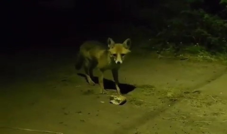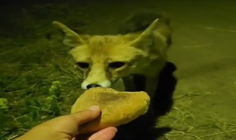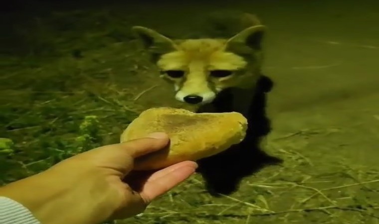 Uludağ’da kamp yapan vatandaşlar, ormanlık alanda yanına gelen tilkinin aç olduğunu fark etti. Kendisine uzatılan ekmeği öncelikle koklayan tilki, yemesi için ekmeğin yere bırakılmasıyla uzaklaştı. Daha sonra yine kendisine ikram edilen ekmeğin yanına gelen tilki, uzun bir süre sağına soluna bakındıktan sonra gözden kayboldu.