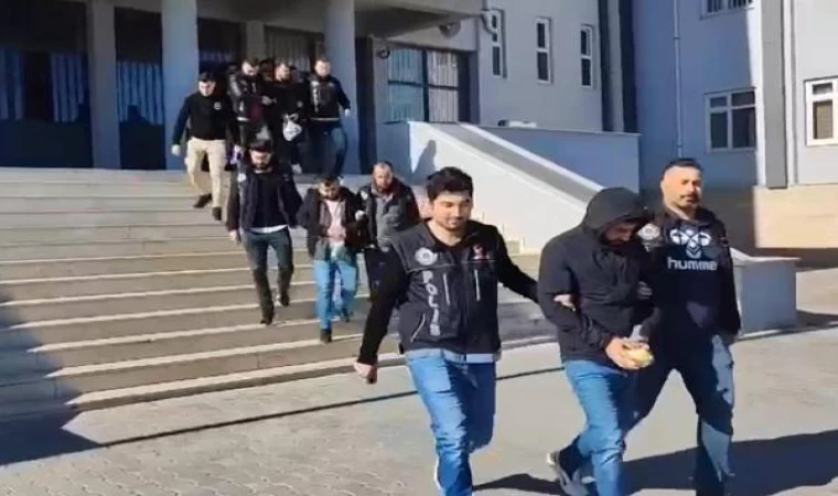 Aydın'ın Germencik ilçesinde durdurulan otomobilde, özel eğitimli köpek 'Tina' ile yapılan aramada 6 kilo 940 gram metamfetaminle yakalanan şüpheliler V.S., İ.A., E.G. ve Ü.D., polisteki işlemlerinin ardından sevk edildikleri adliyede çıkarıldıkları mahkemece tutuklandı. (DHA)