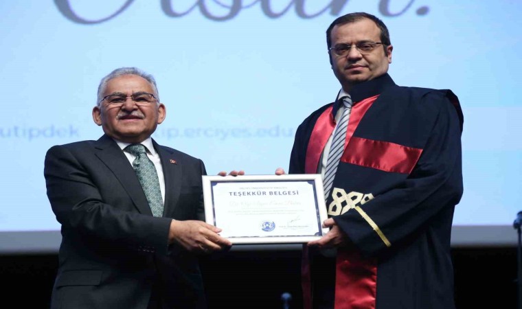 Büyükkılıç, fedakâr sağlık çalışanlarının ellerinden öptüğünü ifade ederek; "Yapmış olduğumuz projelerle, insana verdiğimiz değerle, alacağımız dualarla her zaman daha ileri diyoruz. Sağlık camiası olarak iftihar edilecek bir aileyiz. Bir büyükleri olarak sağlık çalışanlarımızın ellerinden öpüyorum. Onlara bizim çok ihtiyacımız var, kendilerini geliştiren, yetiştiren sağlık çalışanlarımıza” şeklinde konuştu. 14 Mart Tıp Bayramı’nı kutlayan Erciyes Üniversitesi Rektör Yardımcısı Prof. Dr. Muammer Hakan Poyrazoğlu ise 14 Mart Tıp Bayramı’nın bir ruhu olduğunu ifade ederek, “40 yılı aşkın süredir tıp bayramını kutlayan bir insan olarak, her 14 Mart Tıp Bayramı’nda içimde ayrı bir sevinç olur. Çünkü mesleğimle gurur duyuyorum. 14 Mart sadece bayram olarak algılanmamalı. 14 Mart Türk hekiminin bağımsızlığına, vatanına sahip çıktığı, ülkemizin varlığına bütünlüğüne göz diken emperyalist güçlere karşı ben buradayım dediği, dur dediği gündür” diye konuştu. Hekimlerin 14 Mart Tıp Bayramı’nı kutlayan Erciyes Üniversitesi Tıp Fakültesi Dekanı Prof. Dr. Cemal Alper Kemaloğlu da bağımsızlığın önemine dikkat çekerek, “Biz bize sahip çıkmak zorundayız. Ne mutlu bize ki 5 bin yıllık Türk devlet tarihinde hiçbir zaman bağımsızlığımızı kaybetmedik. Köle olmadık, kimseyi de kendimize köle etmedik. Bize bu onurlu geçmişi bağışlayan şanlı ecdadımızı ve başta Gazi Mustafa Kemal Atatürk olmak üzere tüm Milli Mücadele kahramanlarımızı saygıya, minnetle, rahmetle anıyorum” dedi. Kemaloğlu, Erciyes Üniversitesi Tıp Fakültesi’nin hem dünyada hem Türkiye’de müstesna bir yere sahip olduğunu ifade ederek, imza atılan başarılı çalışmalardan söz etti ve akademisyenler ile idari personele teşekkür etti. ERÜ Tıp Fakültesi eğitim sisteminde ve Tıp Fakültesi Hastanelerinde yapılan yenilikleri de anlatan Kemaloğlu, Büyükşehir Belediyesi tarafından amfi girişinde öğrencilere yönelik sıcak çorba ikramı ve poliklinik yenileme çalışmalarının başlatıldığını da söyledi. Kemaloğlu, Başkan Büyükkılıç’a sürprizinden ve sağlık alanındaki desteklerinden dolayı teşekkür ederek; "Saydığım başarılar doğru hedeflere inanan anlayışlı şehir protokolümüzün, hayırseverlerimizin, hocalarımızın, rektörlüğümüzün, emektar personelimizindir. Bu vesileyle başta Büyükşehir Belediye Başkanımız olmak üzere tüm belediye başkanlarımıza, hayırseverlerimize, rektörümüze, başhekimimize, öğretim üyelerimize, idari personelimize ve tüm öğrencilerimize huzurlarınızda şükranlarımı sunuyorum” ifadelerini kullandı. Genç hekimlere ve öğrencilere de meslek hayatlarına dair tavsiyelerde bulunan Kemaloğlu, “Şehitlerimizin, ailelerinizin ve hocalarınızın hakkını bu ülke için çalışıp ödeyin” dedi. Yerli aşı Turkovac’ı geliştiren Erciyes Üniversitesi Tıp Fakültesi Tıbbi Mikrobiyoloji Ana Bilim Dalı Öğretim Üyesi Prof. Dr. Aykut Özdarendeli ise hekimlerin 14 Mart Tıp Bayramı’nı kutlayarak hekimlikte azim ve kararlılığın önemine dair bir konuşma yaptı. Kayseri Tabip Odası Başkanı Dr. Türkmen Bahadır Arıkan da sağlık çalışanlarının 14 Mart Tıp Bayramını kutlayarak; "Cumhuriyetimizin 100’üncü yılında. Tıp fakülteleri öğrencilerinin işgal edilen ismin sembolü olan 14 Mart Tıp Bayramı’nı kutlamaktan onur ve gurur duyuyoruz. Bu misyonun temsilcileri olmak zorluklara karşı durmakla bize güç ve umut veriyor. Bu neden başta hekimler olmak üzere bütün sağlık çalışanlarının tıp bayramını kutluyorum” ifadelerinde bulundu. Konuşmaların ardından doktorlara teşekkür belgesi takdimi gerçekleştirildi.