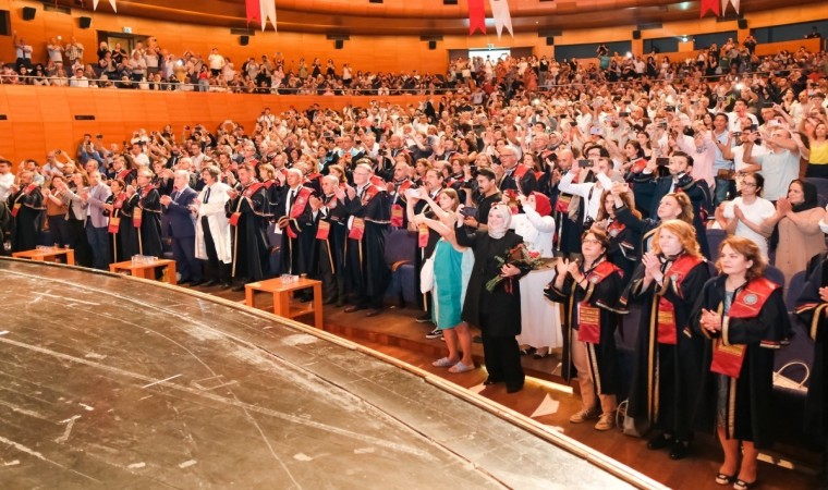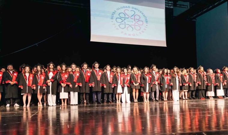Prof. Dr. Ahmet Ursavaş danışmanlığında Dr. Merve Hıdır, Dr. Şeyma Kılıçarslan, Dr. Semih Arazici, Dr. Berfin Şimşek, Dr. Sidar Kaçmaz ve Dönem Temsilcisi Dr. Denizhan Talay Tibuk’tan oluşan 49. dönem mezuniyet kurulu ve dekanlık tarafından organize edilen tören, Merinos Kongre ve Kültür Merkezi’nde gerçekleştirildi. Törene BUÜ Rektörü Prof. Dr. Ferudun Yılmaz, Vali Yardımcısı Hamdi Bolat, Rektör Yardımcıları Prof. Dr. İrfan Kırıştıoğlu, Prof. Dr. Zekeriya Arı, Bursa Büyükşehir Belediyesi Genel Sekreter Yardımcısı Mehmet Emin Direkçi, Bursa Tabip Odası Başkanı Dr. Kadir Binbaş, akademisyenler, Tıp Fakültesi idari personeli, mezun öğrenciler ve aileleri katıldı.