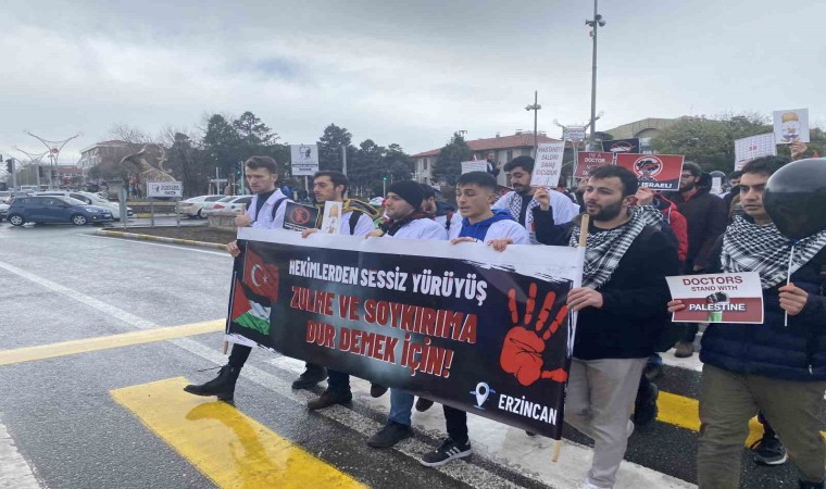 Erzincan Binali Yıldırım Üniversitesi Tıp Fakültesi öğrencileri ve sağlık çalışanları, İsrail ordusunun abluka altına aldığı Gazze’de bulunan hastanelere yönelik düzenlediği saldırılarına yönelik “Zulme ve Soykırıma Dur Demek İçin Hekimlerden Sessiz Yürüyüş” gerçekleştirdi.