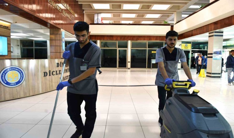 Öğrencilerden Mehmet Caner Bahçivancı, "Dicle Üniversitesi Tıp Fakültesi 2. sınıf öğrencisiyim. Aktif olarak haziran ayından bu yana hastanemizde temizlik alanında çalışmaktayım. YKS’ye hazırlandığım dönemde KPSS çalışmalarımı da beraberinde yürüttüm. Bu çalışmalarımın neticesinde 2022 senesinde Tıp Fakültesi’nde başladım. Birinci sınıfı okurken aynı zamanda KPSS sınavına başvurdum. Yaptığım sonuç neticesinde 83 puan aldım. Aldığım sonuç ile Dicle Üniversitesi Hastanelerinde alım olduğunu görünce bireysel olarak böyle bir yola girmeyi yakın arkadaşımla birlikte istedik" dedi.