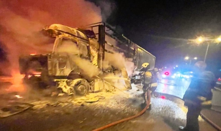 Kocaeli’nin Çayırova ilçesinde seyir halindeyken alev alan tır kullanılamaz hale geldi.