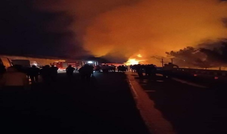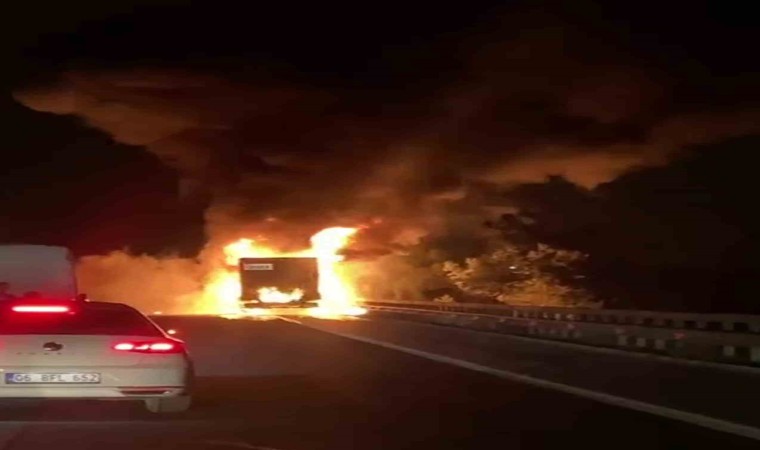 Hatay’ın İskenderun ilçesinde seyir halindeki tır alev alev yandı. Yangın anı cep telefonu kamerasıyla anbean görüntülendi.