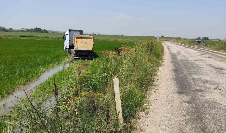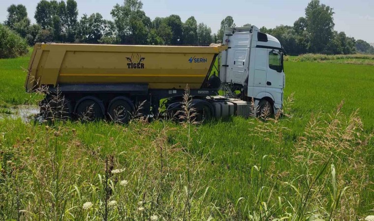 Kaza, Büyükdöllük köyü yolu üzerinde meydana geldi. Sürücüsünün direksiyon hakimiyetini kaybettiği tır, yoldan çıkarak suyla kaplı çeltik tarlasına girerek çamura saplanıp durdu. Yolun dar olmasından dolayı kendisine yol vermeyen küçük araçlardan dolayı hakimiyetini kaybettiğini belirten tır sürücüsü C.K, "Bu yolda haftada olmasa da 15 günde bir bu şekilde benim gibi bir arkadaş tarlaya uçuyor. Yolun dar olması bir yana küçük araçlar daha çok sıkıntılı, yol vermiyorlar. Yetkilerin bu yola bakmaları lazım" dedi.