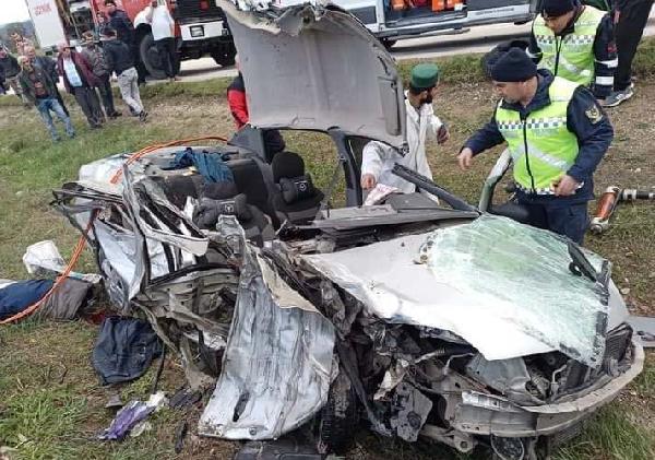 Kaza, dün akşam Taraklı- Nallıhan kara yolunda meydana geldi. İstanbul yönüne giden Özgür Pınar (40) yönetimindeki 34 CTE 991 plakalı TIR, Göynük ilçesine giden Ahmet Güler idaresindeki 31 AKE 346 plakalı otomobille çarpıştı. Otomobildeki İbrahim Dişçi kaza yerinde, babası Abdurrahman Dişçi ise hastaneye kaldırılırken ambulansta yaşamını yitirdi. Otomobil sürücüsü Ahmet Güler ise İzzet Baysal Eğitim ve Araştırma Hastanesi'nde tedaviye alındı.