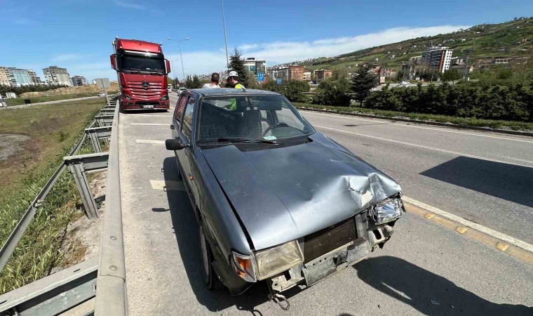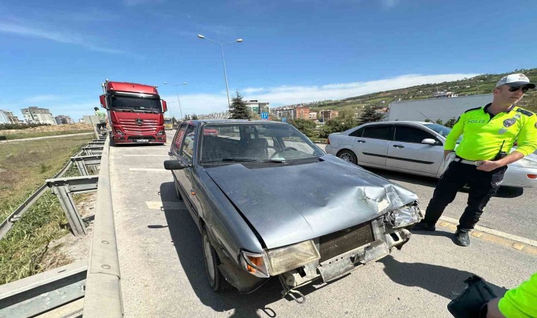 Kaza, Samsun’un Canik ilçesi İlkadım Bulvarı 200 Evler mevkisinde meydana geldi. Edinilen bilgiye göre, Yiğit S. idaresindeki 55 RJ 901 dorse plakalı tır ile Temel K.’nin kullandığı 55 BCT 43 plakalı otomobil çarpıştı. Çarpışmanın etkisiyle otomobil sürücüsü direksiyon hakimiyetini kaybederek bariyerlere çarptı. Kaza maddi hasarla atlatıldı. Polis kazayla ilgili tutanak tuttu.