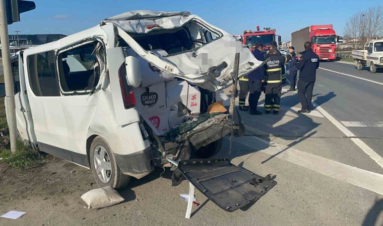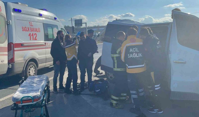 Tekirdağ’ın Çerkezköy ilçesinde kırmızı ışıkta bekleyen minibüse tırın arkadan çarpması sonucu meydana gelen kazada 5 kişi yaralandı.