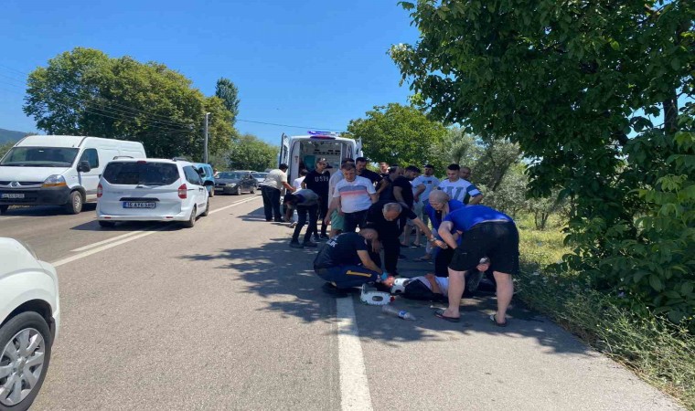 Orhangazi-İznik Karayolu Yeniköy yol ayrımı yakınlarında sürücüsünün dönüş yapmaya çalıştığı motosiklete İznik istikametinden gelen tır çarptı. Kazada motosiklet sürücüsü ile arkasında yolcu olarak bulunan bir kişi ağır yaralandı.