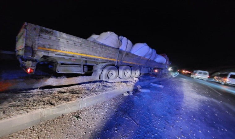 Muğla’nın Milas ilçesinde kontrolden çıkan tır refüje çıkarak asılı kalırken, facianın eşiğinden dönüldü.