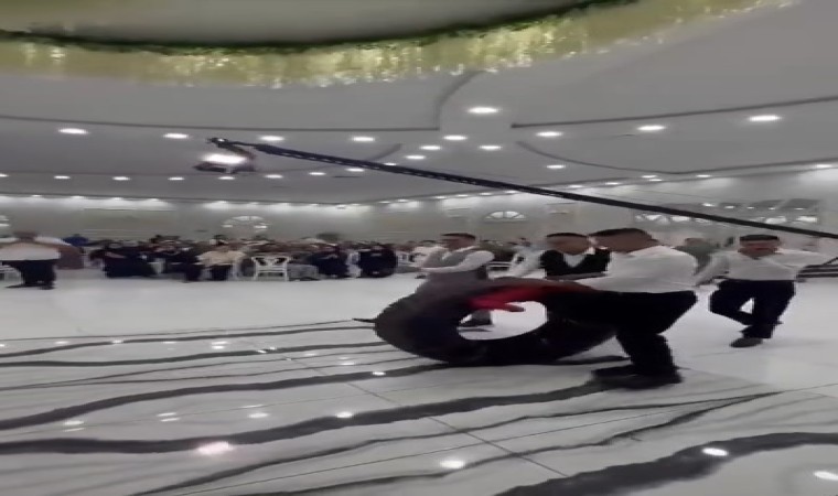 Kocaeli’nin Gebze ilçesinde arkadaşları, tır şoförüne düğünde tır lastiği ve eski 1 milyon TL kağıt para hediye etti. O anlar vatandaş kamerasına yansıdı.