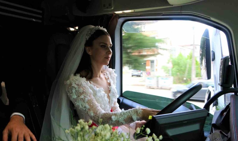 Gelinliği ile tır kullanmanın hayali olduğunu söyleyen Elif Felek ise “Tır kullanıyorum, inşallah salona kadar ben götüreceğim. Bugün en mutlun günümüz. Bu benim en büyük hayalimdi. Gelinlik ile tır kullanan daha önce hiç görmedim. Çok mutluyum ve eğlenceli” diye konuştu.