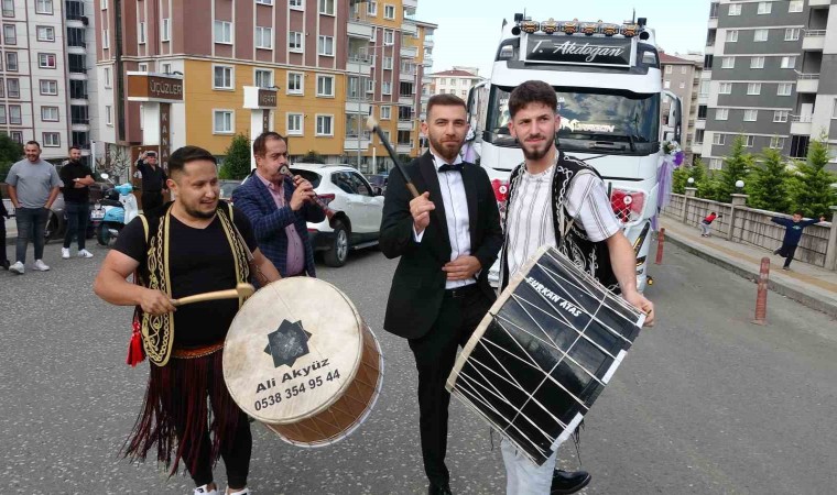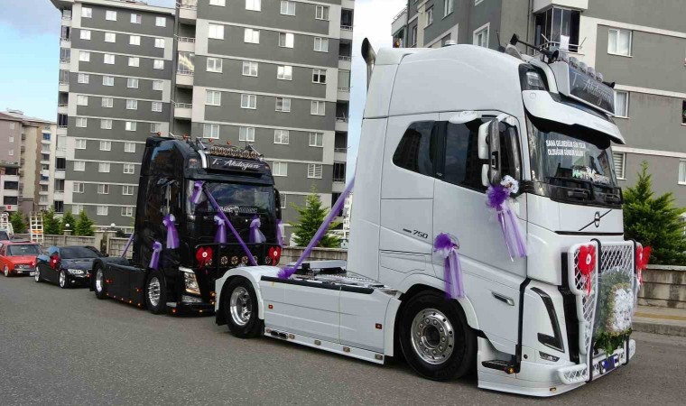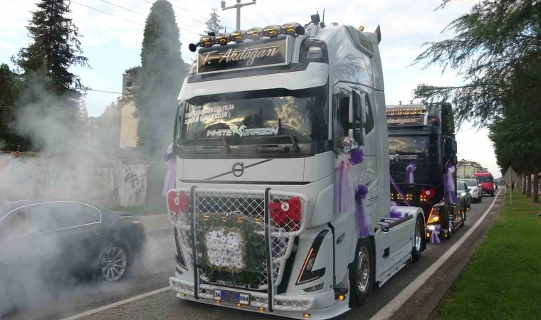 Ordulu tır sürücüleri Tanju Akdoğan ile Elif Felek evlilik kararı aldı. Her ikisi de tır kullanan çift, mesleklerine uygun bir düğüne imza attı. Gelin için beyaz tır, damat için siyah tır süslendi. Damat konvoy eşliğinde gelinin evine gitti. Buradan dualarla gelin alındı.