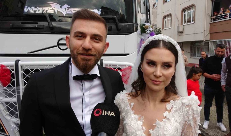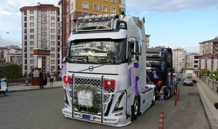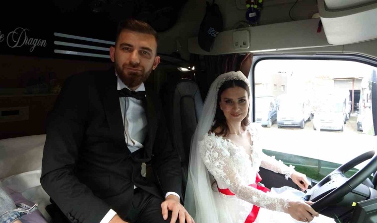 Ordu’da evlilik kararı veren Tanju Akdoğan ile Elif Felek, gelin araçları olarak 2 adet tırı süsledi. Akdoğan gibi kendisi de tır kullanan Felek, gelin arabası olarak süslenen tırın koltuğuna gelinlik ile binerek, salona gitti. Tırın direksiyonunda gelini görenler ise şaşırdı.