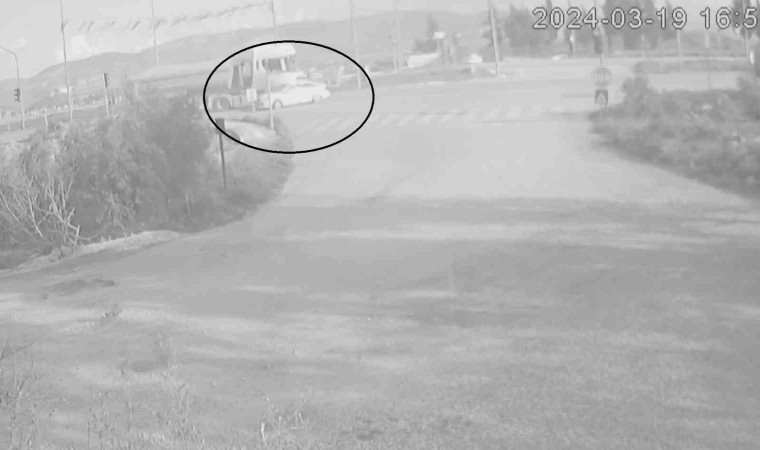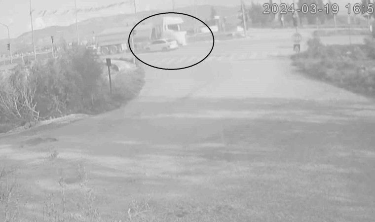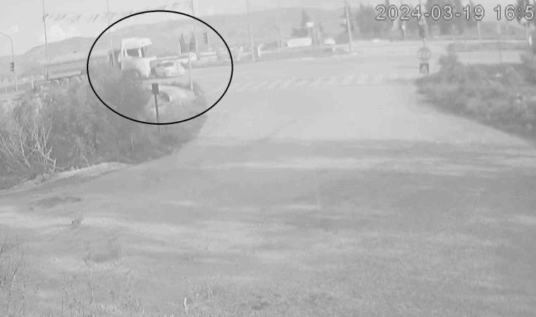 Kaza, Hatay - Gaziantep yolu Hassa ilçesi Aktepe Mahallesi mevkiinde meydana geldi. Fatih K. yönetimindeki 31 AGY 03 plakalı Ford marka otomobil kavşakta, İzettin C. idaresindeki 31 AOF 129 plakalı Ford marka tırla çarpıştı. Çarpışmada otomobil sürücüsü ve oğlu Oğuzhan K. hafif şekilde yaralandı. Kaza anı ise çevrede bulunan bir iş yerinin güvenlik kamerasına yansıdı. Görüntülerde; tır sürücüsünün ışık ihlali sonrası ani freninin muhtemel bir faciayı önlediği görüldü.