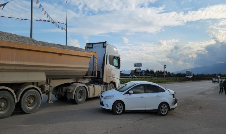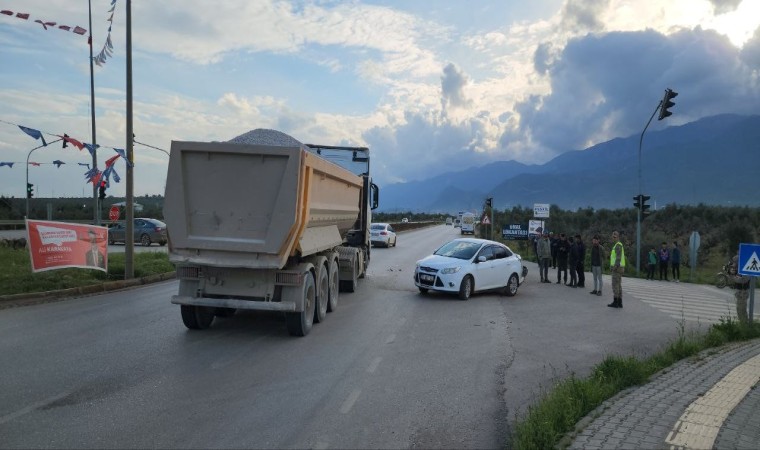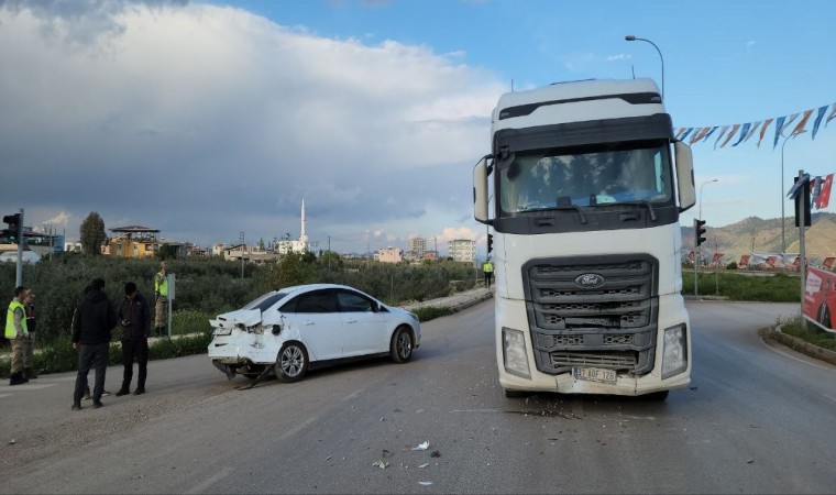 Hatay’ın Hassa ilçesinde tır ile otomobilin çarpışması sonucu meydana gelen trafik kazasında 2 kişi yaralandı. Işık ihlali sonrası çakıl yüklü tır sürücüsünün ani frenle faciayı önlediği anlar ise güvenlik kamerasına yansıdı.