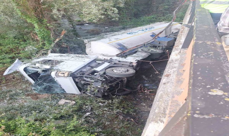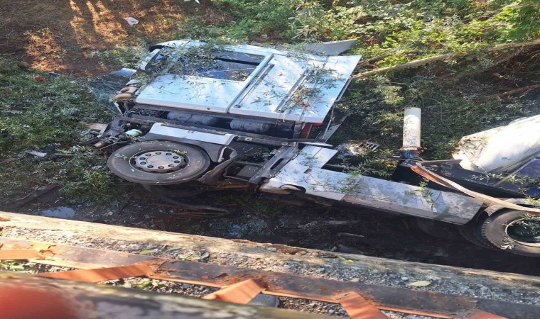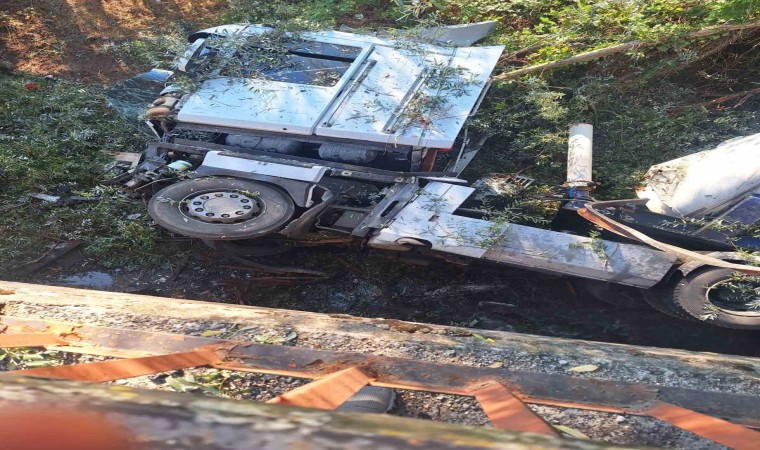 Bolu’da kontrolden çıkan tır, uçuruma yuvarlandı. Meydana gelen kazada 1 kişi hafif şekilde yaralandı.