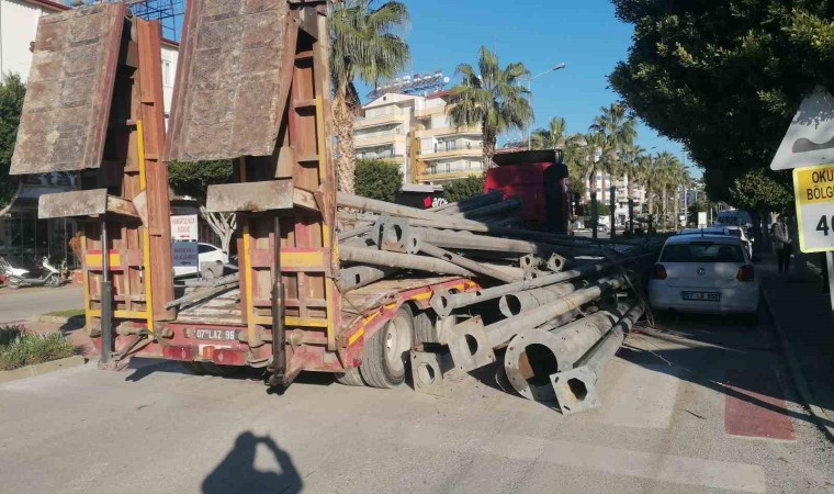 Olay, Tınaztepe Caddesi üzerinde meydana geldi. Alınan bilgiye göre; Tınaztepe Caddesi’ne çıkan Gürsel Güler’in kullandığı 007 LAZ 96 dorse plakalı tır, kavşaktan dönmek isterken üzerindeki demir direkler yola devrildi. Bağlı bulunduğu halatların kopması sonucu büyük bir gürültüyle yola devrilen direkler, yol kenarında park halinde bulunan 07 LB 950 ve 07 LZ 880 plakalı otomobillere zarar verdi.