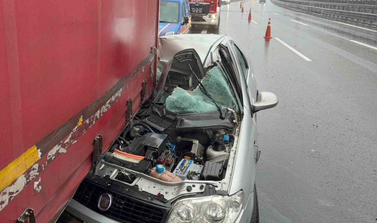 Kaza, TEM Otoyolu Ekrem Özdemir Viyadüğü’nde meydana geldi. Alınan bilgilere göre, Ankara’dan İstanbul istikametine seyir halinde olan S.F. idaresinde ki 34 KKN 583 plakalı Fiat marka otomobil, aynı istikamette seyir halinde olan D.A. idaresindeki 76 AAN 162 plakalı Daf marka tıra arkadan çarptı. Çarpışmanın etkisi ile otomobilde bulunanlar sıkışınca, bölgeye sağlık, itfaiye ve jandarma ekipleri sevk edildi. İhbar üzerine bölgeye gelen ekipler, araç içerisinde sıkışanları kurtararak sağlık ekiplerine teslim etti. Kazada araç içerisinde yolcu olarak bulunan T.H.H. olay yerinde feci şekilde hayatını kaybederken, araçta bulunan şoför dahil 4 kişi ambulanslarla hastanelere kaldırıldı. Kaza sebebi ile otoyol 2 şeritten verilirken, araçların kaldırılmasının ardından normal seyrine döndü. Kaza ile ilgili inceleme başlatıldı.