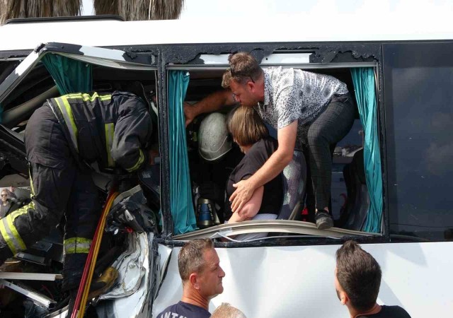 ALANYA’DAKİ OTELLERDEN ALMIŞ OLDUĞU 33 RUS UYRUKLU TURİSTİ HAVALİMANINA GÖTÜRMEKTE OLAN NURİ OKUDAN İDARESİNDEKİ 07 BIC 869 PLAKALI TUR MİDİBÜS, D-400 KARAYOLU IILICA MAHALLESİ SINIRLARI İÇİNDE YOLUN DIŞINDA PARK HALİNDEKİ 07 GDK 46 ÇEKİCİ PLAKA, 07 AZK 83 DORSE PLAKALI TIRA ARKADAN ÇARPTI.