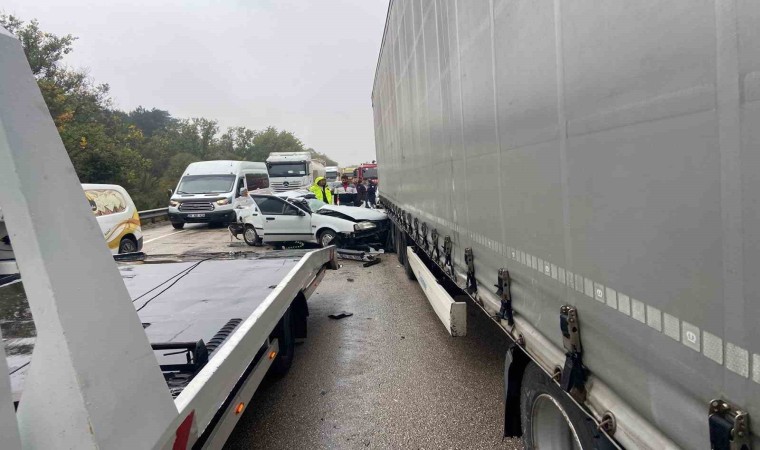 Kaza, K-100 karayolu Gerede ilçesinde meydana geldi. Edinilen bilgiye göre, Karabük istikametinde seyreden J.L. yönetimindeki yabancı plakalı tır, M.K. idaresindeki 34 NV 2995 plakalı hafifi ticari araçla çarpıştı. Bu sırada aynı istikamette ilerleyen H.T’nin kullandığı 59 UB 099 plakalı otomobil de kaza nedeniyle yol kenarında duran tıra arkadan çarptı. Meydana gelen kazada otomobil sürücü H.T. otomobil içerisinde sıkıştı. İhbar üzerine kaza yerine polis, sağlık ve itfaiye ekipleri sevk edildi. Otomobilde sıkışan sürücü, Gerede Belediyesi İtfaiye Müdürlüğü ekiplerinin müdahalesiyle kurtarıldı. Kazada ağır yaralanan otomobil sürücüsü, ambulansla Gerede Devlet Hastanesine kaldırıldı.