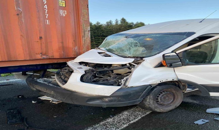 TEM Otoyolu’nun Bolu geçişinde tırın dorsesine çarpan panelvan hurdaya döndü. Meydana gelen kazada panelvan sürücüsü yaralandı.