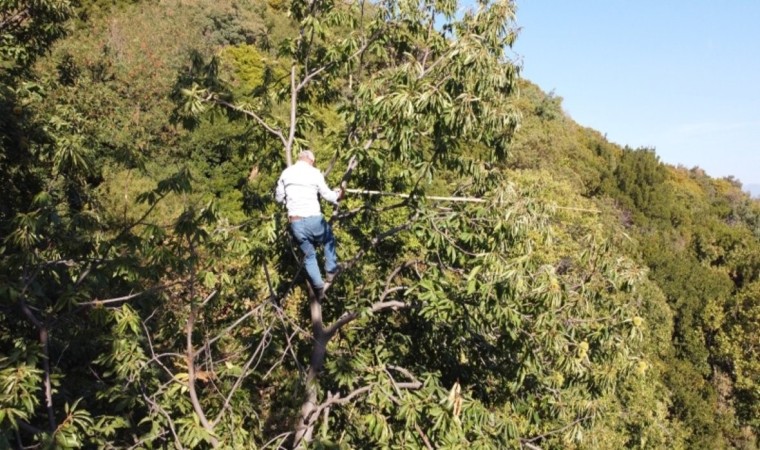 İzmir’in Tire ilçesinin dağlık kesimlerinde yetişen kestanede hasat dönemi başladı. Tıpkı komando gibi ağaçlara tırmanan özel eğitimli kestane silkicilerinin günlük yevmiyeleri 2 bin TL’yi buluyor.