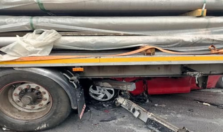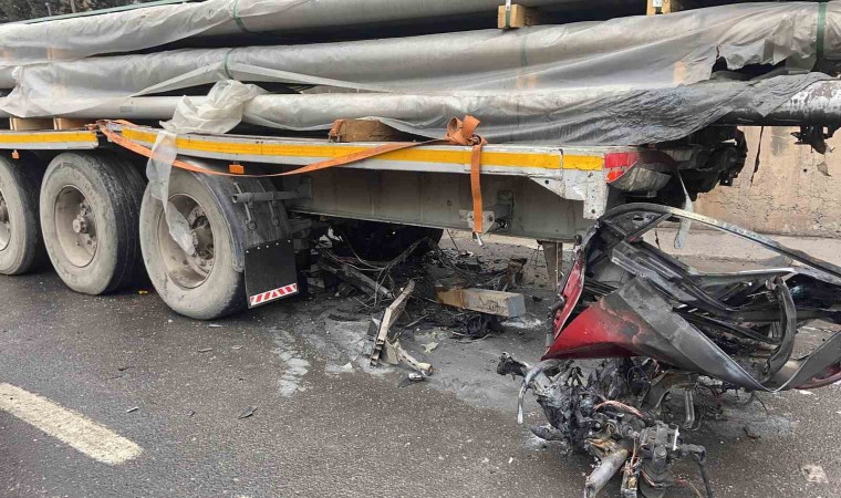 Kocaeli’nin Dilovası ilçesinde park halindeki tırın altına giren otomobilde yangın çıktı. Feci kazada sürücü hayatını kaybetti, otomobil ise hurdaya döndü.