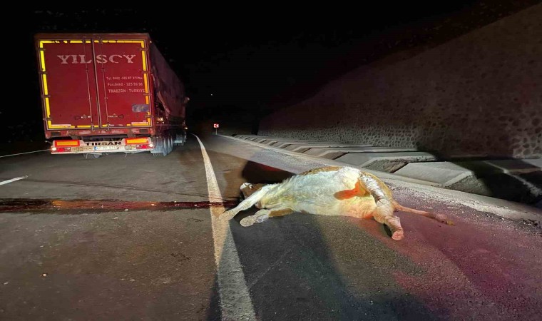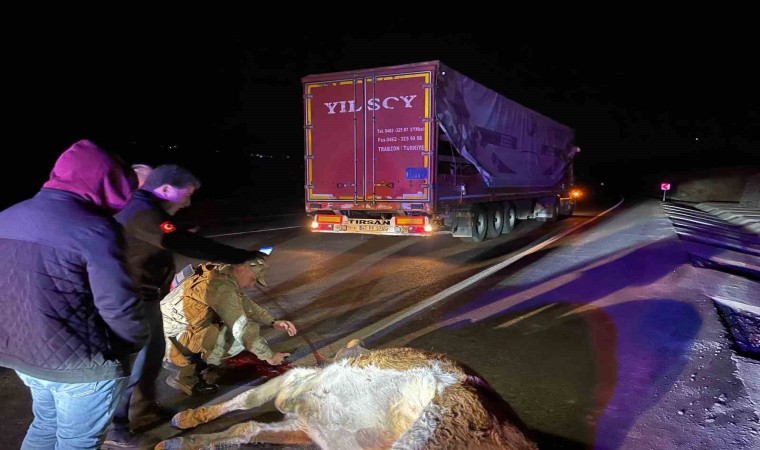 Bingöl’de tırın çarptığı inek telef oldu.