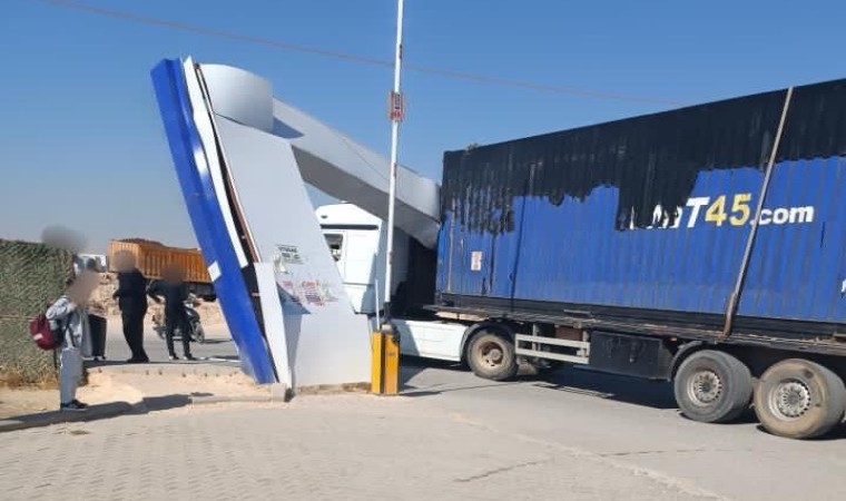 Adıyaman’da tırın altından geçmeye çalıştığı konteyner kent levhası yerinden söküldü.