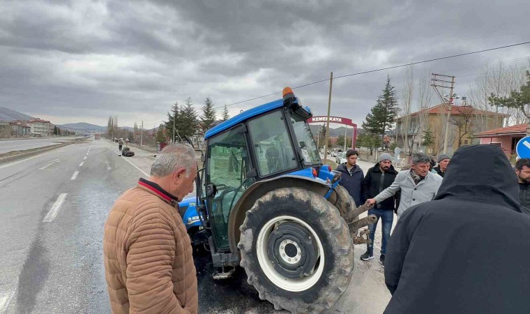 Kaza, Afyonkarahisar’da Bolvadin-Emirdağ kara yolunda meydana geldi. Edinilen bilgilere göre, Emirdağ’a bağlı Kemerkaya Köyü girişinde H.S. idaresindeki 26 AFA 964 plakalı tır, M.K. idaresindeki 03 KU 890 plakalı traktöre çarptı. Çevredekilerin ihbarı üzerine bölgeye jandarma ve sağlık ekipleri sevk edildi. Kazada ölen ya da yaralanan olmazken tır yol kenarına devrildi, traktörün ise ön 2 tekerleği koptu. İki aracın da kullanılmaz hale geldiği kaza sonrası Kemerkaya köy sakinleri duruma tepki göstererek köy çıkışına trafik lambası yapılması gerektiğini söyledi.