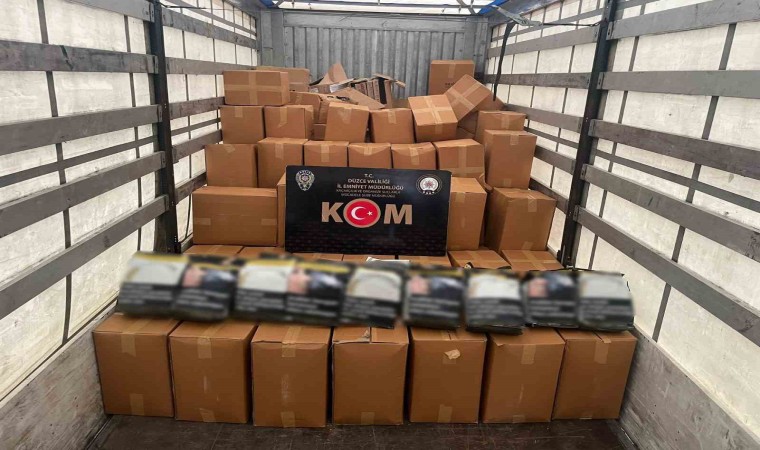 DÜZCE (İHA) – Düzce’de polis ekipleri tarafından durdurulan tırın dorsesinden 96 koli sahte bandrollü sarmalık kıyılmış tütün ele geçirildi.