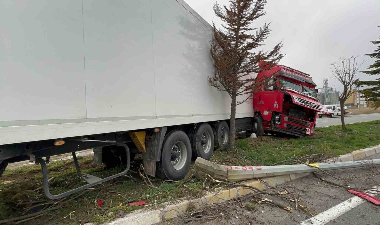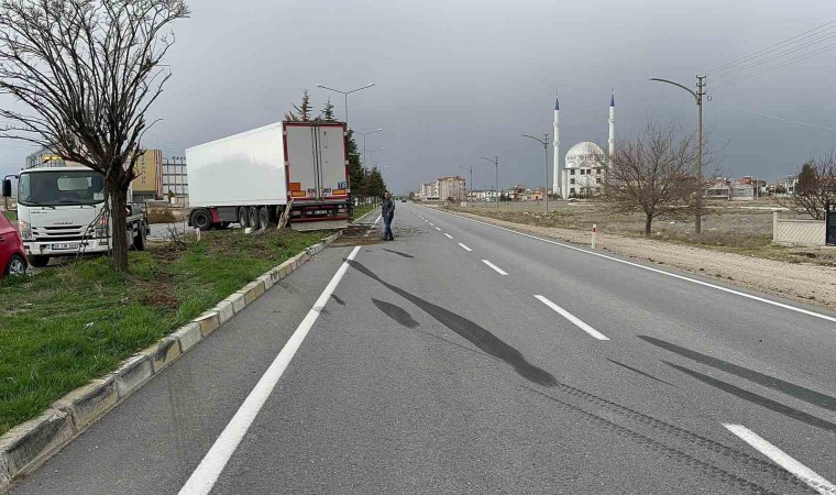 Kaza, Bolvadin ilçesi girişinde meydana geldi. Edinilen bilgilere göre, H.Y. İdaresindeki 54 AEH 576 plakalı tır sürücüsünün direksiyon hakimiyetini kaybetmesi sonucu kontrolden çıktı. Araç ardından yol ortasındaki refüje girip, aydınlatma direğini ve çam ağacını yıkarak durabildi. Kaza esnasında yolun boş olması yaşanabilecek bir facianın önüne geçerken, olayda şans eseri ölen ya da yaralanan ise olmadı.
