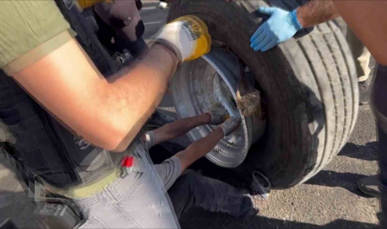 Dedektör köpeği araçta yaptığı aramada lastiklere tepki verdi. Narkotik polisleri tırın üzerinden lastiği sökerek içerisinden 89 pakette toplam 53 kilogram esrar ele geçirdi.
