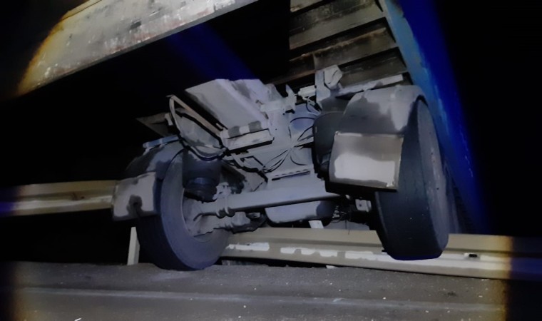 Askıda kalan tır çekici yardımıyla kurtarıldı.