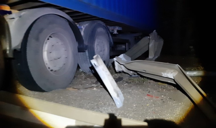 Bolu’nun Mudurnu ilçesinde Aynalıkaya geçişinde bariyerlere çarpan tır, uçurumda askıda kaldı. Tırın sürücüsü kazada hafif şekilde yaralandı.