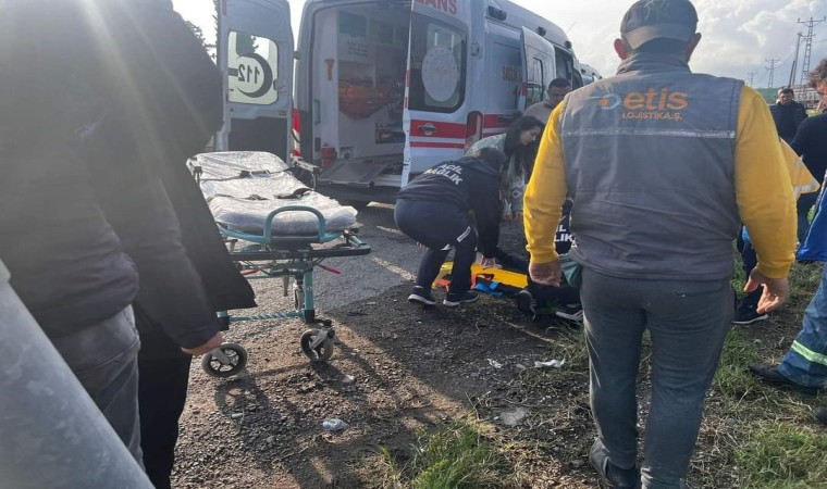 Hatay’ın Dörtyol ilçesinde tırla motosikletin çarpışması sonucu meydana gelen trafik kazasında 1’i ağır 2 kişi yaralandı. Kaza anı güvenlik kamerasına yansıdı.