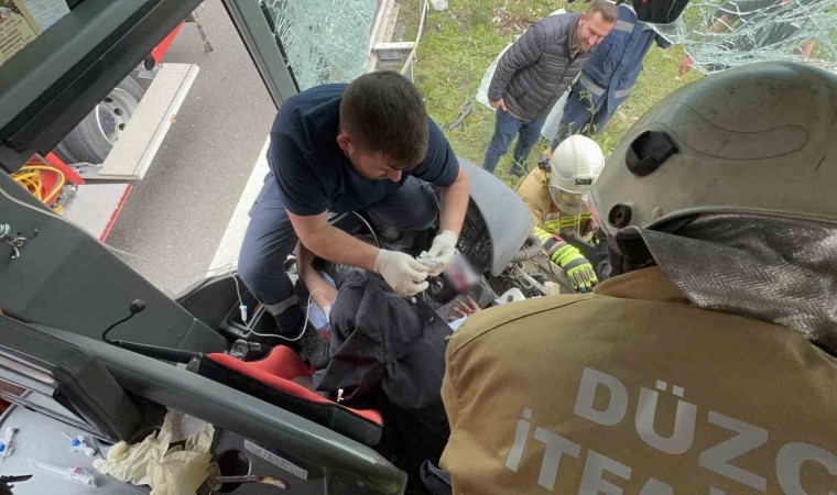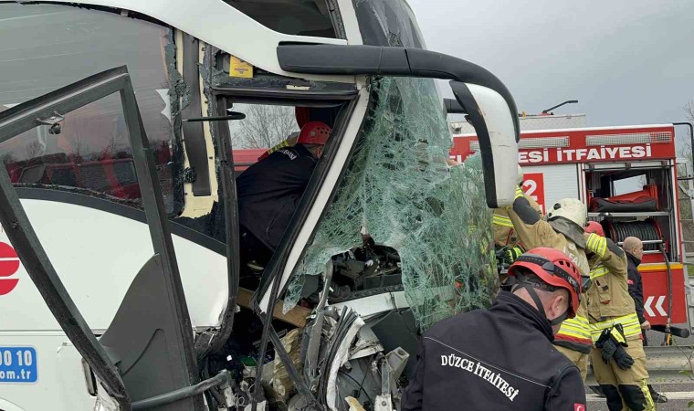 Kaza, TEM Otoyolu Düzce Gişeler mevkiinde meydana geldi. Alınan bilgilere göre, İstanbul’dan aldığı yolcuları Ankara’ya götüren Ahmet I. idaresindeki 41 FM 831 plakalı Efe Turizm isimli Kocaeli firması, aynı istikamette seyir halinde olan M.Y. idaresindeki 78 BR 941 plakalı tıra arkadan çarpıp refüje çıktı. Refüjün çamurlu olması sebebiyle çamura batan otobüs, karşı şeride geçmeden durdu. Kaza sonrası bölgeye sağlık, polis, jandarma, itfaiye ve karayolları ekipleri sevk edildi. Kazada otobüs muavini Ertuğrul P. sıkıştığı yerden itfaiye ekiplerince kurtarılırken, yolcular Hatice D., Belhude T., Engin Y., Özlem T., Mehmet C., Yusuf A., Abdullah S.M., Selma B., Esengül B., Esra A., Filiz Y., Haydar A., Ali K. ve Nuriye Ö. yaralanarak hastaneye kaldırıldı.