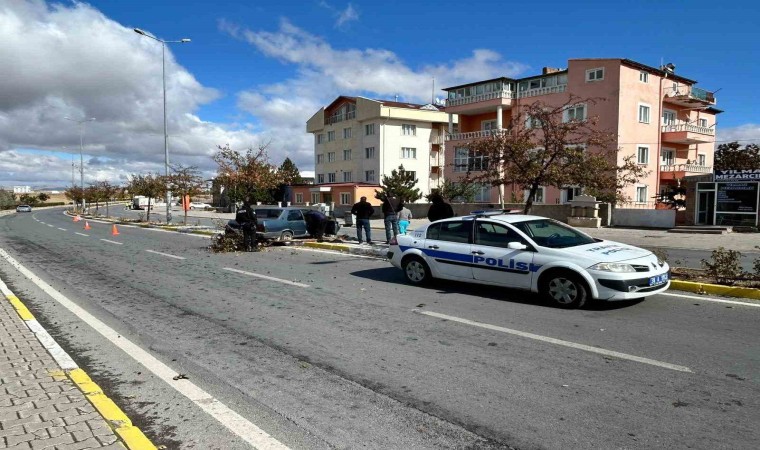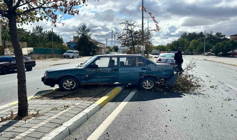 Kayseri’nin Tomarza ilçesinde tırla çarpışan otomobil orta refüje çıktı.