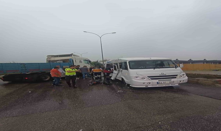 Edinilen bilgilere göre, Murat B. idaresindeki 03 BT 013 plakalı minibüs ile Sinan A’nın kullandığı 70 ABK 352 plakalı mermer yüklü tır, Fatih Mahallesi Filistin Caddesi’nde henüz belirlenemeyen bir nedenden ötürü çarpıştı. Kazada, minibüste bulunan 2’si çocuk 9 kişi yaralandı. Yaralılar çevredekilerin haber vermesi üzerine olay yerine gelen ambulanslarla hastanelere kaldırıldı. Yaralıların sağlık durumlarının iyi olduğu belirtildi.