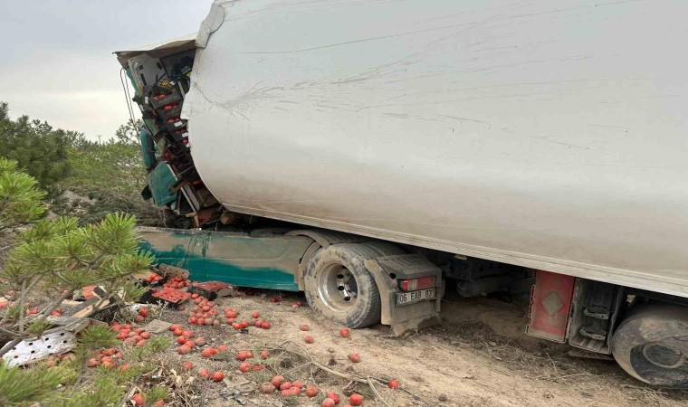 Afyonkarahisar’da domates yüklü tır ile kamyonetin çarpıştığı kazada 2 kişi yaralanırken, kazaya karışan tırın kontrolden çıkarak karşı şeride geçtiği olay anın yolun boş olması ise yaşanabilecek facianın önüne geçti.