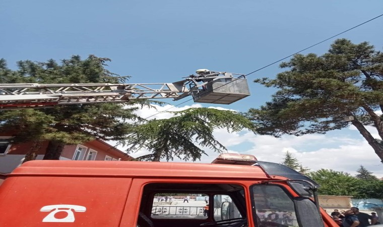 Afyonkarahisar’da tırmandığı ağaçta mahsur kalan kedi itfaiye ekipleri tarafından kurtarıldı.
