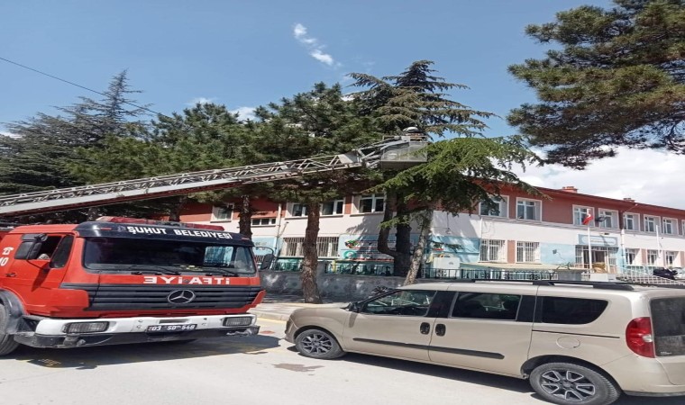 Olay, Suhut ilçe merkezinde meydana geldi. Edinilen bilgilere göre, bir cam ağacından kedi sesi geldiğini fark eden çevre sakinleri durumu itfaiyeye bildirerek yardım istedi. İhbar üzerine bölgeye gelen ekipler ardından itfaiye merdiveni ağaca çıktı. Yaklaşık 10 metre yükseğe çıkan ekipler kediyi tırmandığı ağacın tepesinde buldu. Ekipler ardından kediyi merdiven yardımı ile kurtardı. Sağlık durumunun iyi olduğu gözlenen kedi sonrasında ise sokağa salındı.