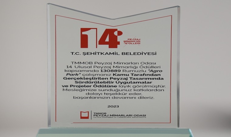 Şehitkamil Belediyesi tarafından yapımı tamamlanan AGRO Park, 14. Ulusal Peyzaj Mimarlığı Ödülleri töreninde Kamu Tarafından Gerçekleştirilen Peyzaj Tasarımında Sürdürülebilir Uygulamalar ve Projeler Ödülü’ne layık görüldü.