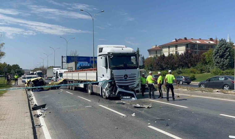 Kaza, Eskişehir Çevreyolu’nda meydana geldi. Edinilen bilgiye göre, Bursa istikametinde seyreden Oktay Ş. idaresindeki 06 GSA 64 plakalı Tofaş marka araç, virajda sürücüsünün direksiyon hakimiyetini kaybetmesi sonucu savrulmaya başladı. Savrulan otomobil önce refüje daha sonra da aydınlatma direğine çarparak karşı şeride geçti. Karşı şeride geçen otomobil, D.Ü. idaresindeki 06 EIS 134 çekici plakalı tıra daha sonra ise 34 FTR 895 plakalı araca çarptı.