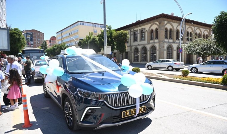 Türkiye’nin yerli ve milli otomobili Togg, Çorum’da erkekliğe ilk adımı atan çocukların sünnet arabası oldu.