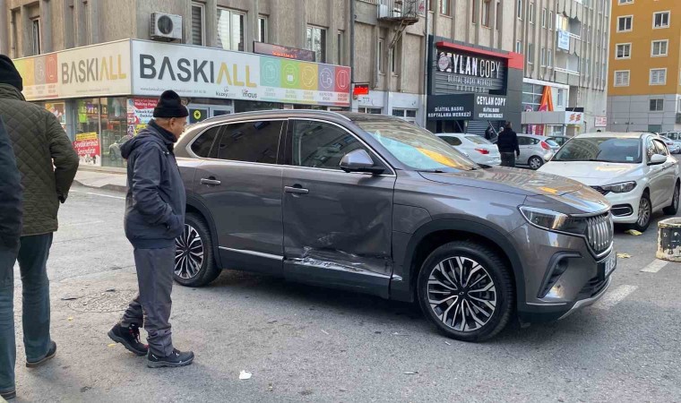Kayseri’nin Kocasinan ilçesinde bir otomobille çarpışan Togg’da maddi hasar meydana gelirken, kaza güvenlik kamerasına yansıdı.