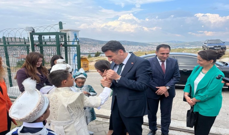 Bilecik’te korunma ve bakım altında bulunan 13 çocuk sünnet ettirilirken, Vali Şefik Aygöl sünnet arabası olarak süslenen TOGG’un direksiyonuna geçti, çocukları gezdirdi.